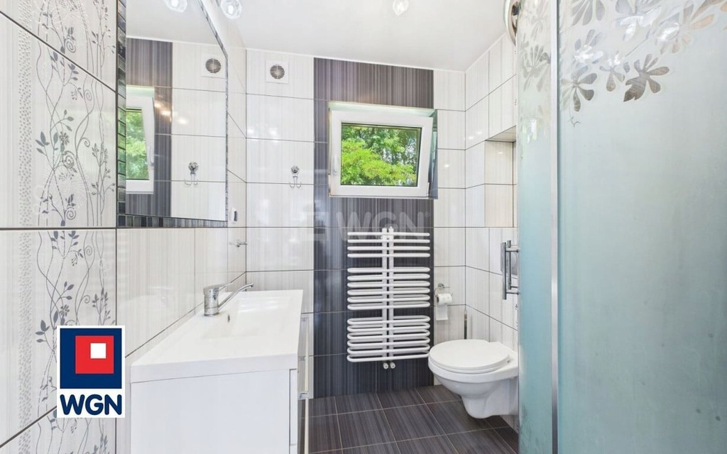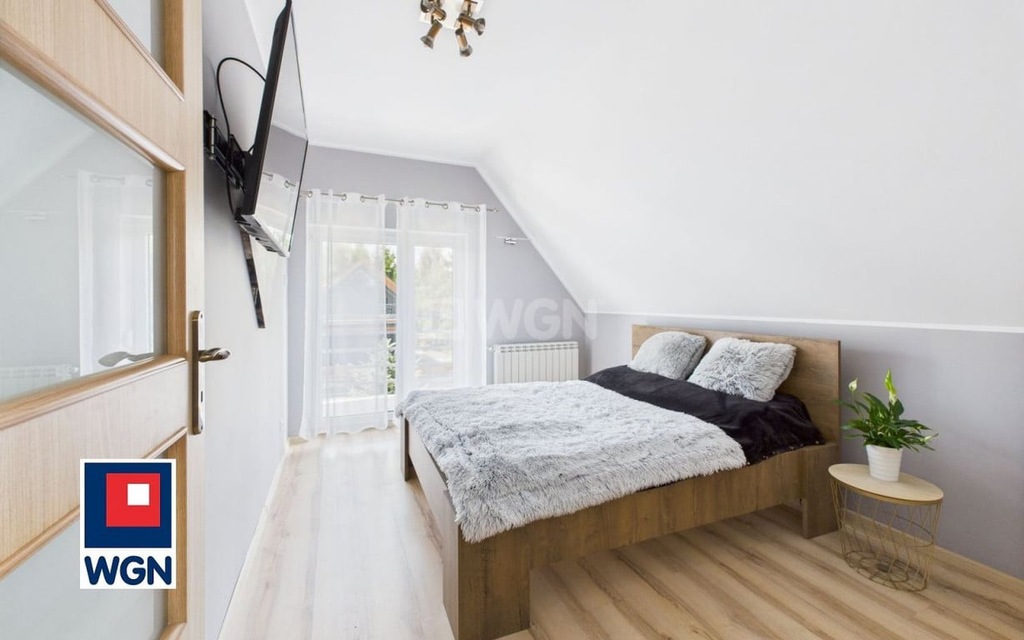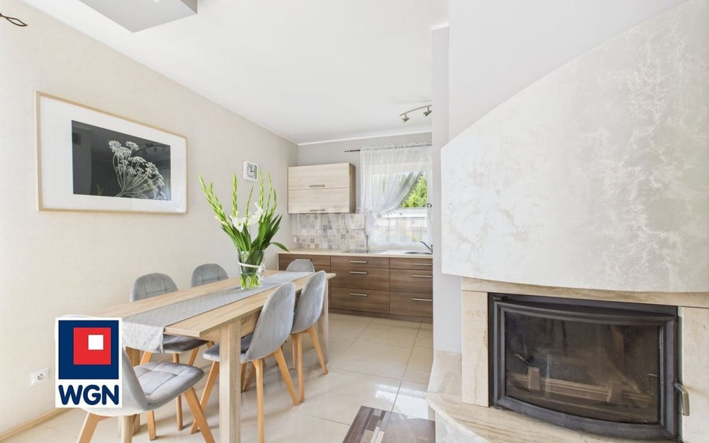 Dom piętrowy oddany do użytkowania w 2014 roku składa się z przytulnego, wszechstronnego salonu. W centralnym jego punkcie znajduje się kominek dzięki któremu w jesienne i zimowe wieczory miło spędza się czas. Rozprowadzane z niego ciepło dociera również do pozostałych pomieszczeń w domu co z kolei wpływa na niskie koszty ogrzewania. Na półpiętrze zamontowana jest klimatyzacja, która wspaniale schładza wszystkie pomieszczenia w upalne dni, w dni chłodniejsze jest też drugim , alternatywnym źródłem ogrzewania.