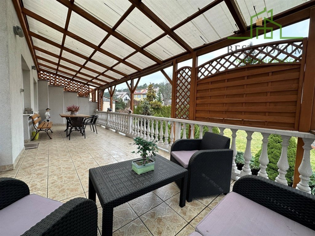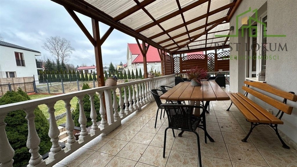 Z salonu i kuchni jest wyjście na zadaszony taras z grilem i miejscem do wypoczynku. To idealne miejsce na letnie popołudnia i wieczory, gdzie możesz się zrelaksować, poczytać książkę, napić się kawy lub zjeść obiad na świeżym powietrzu. Z tarasu rozpościera się piękny widok na ogród i lasy rezerwatu Karczówka. To prawdziwy raj dla miłośników natury i aktywnego wypoczynku. W pobliżu są ścieżki rowerowe i szlaki turystyczne, gdzie możesz podziwiać malownicze krajobrazy i odetchnąć świeżym powietrzem.