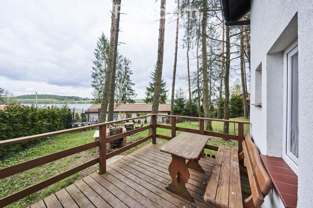Dodatkowo, można bezpośrednio wyjść na taras, skąd rozciąga się piękny widok na jezioro.
