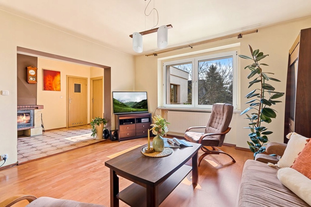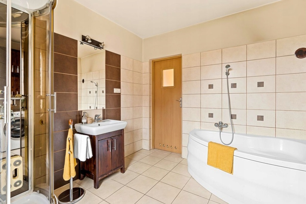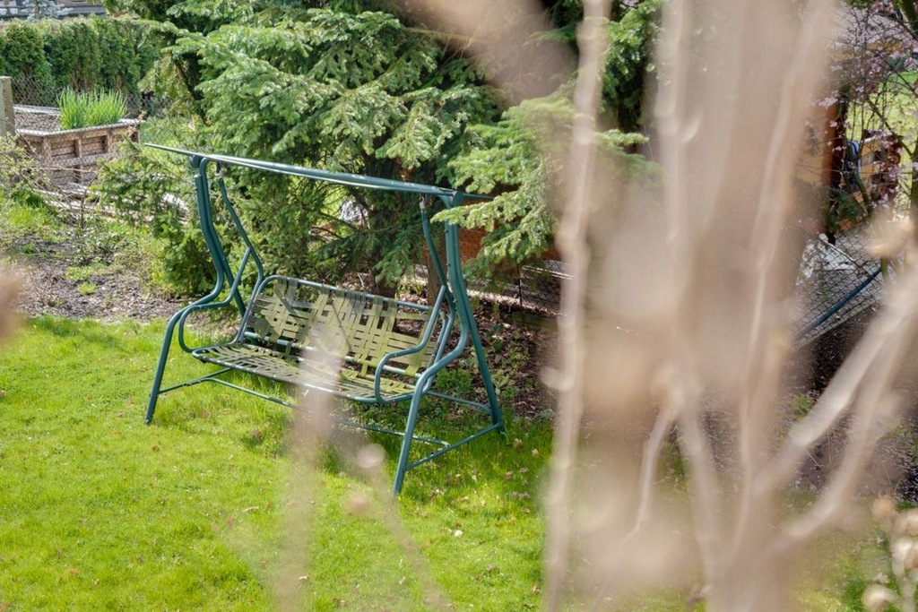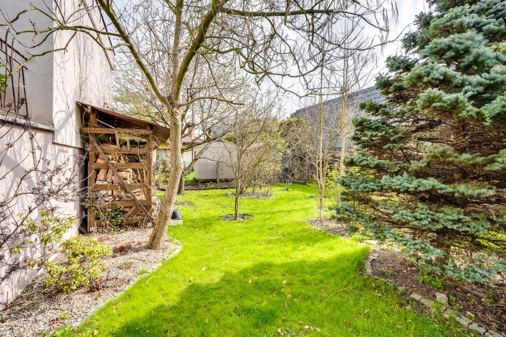 Z przedpokoju możemy wyjść na taras a bezpośrednio z niego na ogród, który jest oddzielony zielenią od sąsiednich zabudowań.