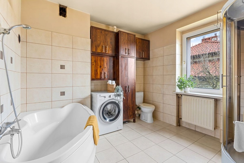W bryle budynku znajduje się garaż dwustanowiskowy z bramą otwieraną na pilota.