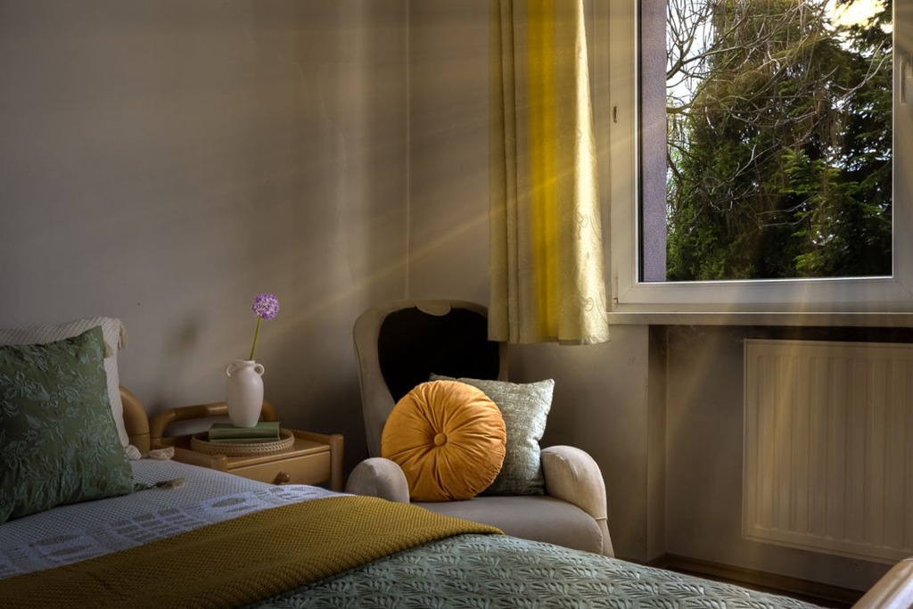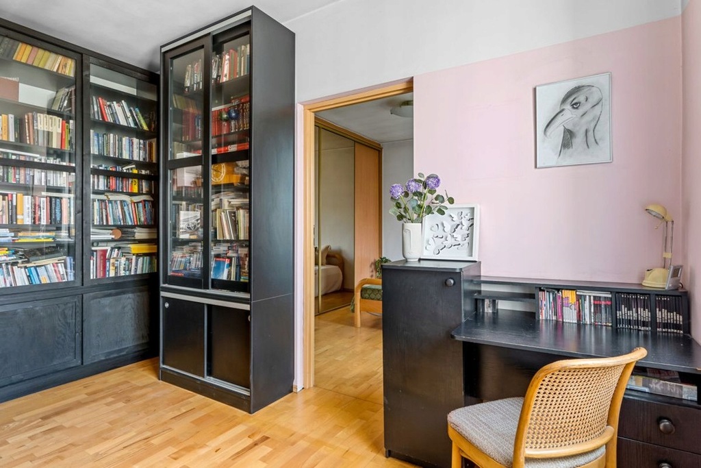- Przed sypialnią znajduje się pomieszczenie idealne na garderobę, gabinet czy biblioteczkę