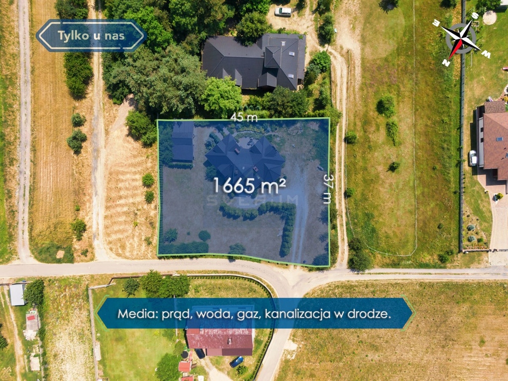 Działka o wymiarach: szer. 45 m i dł. 37 m