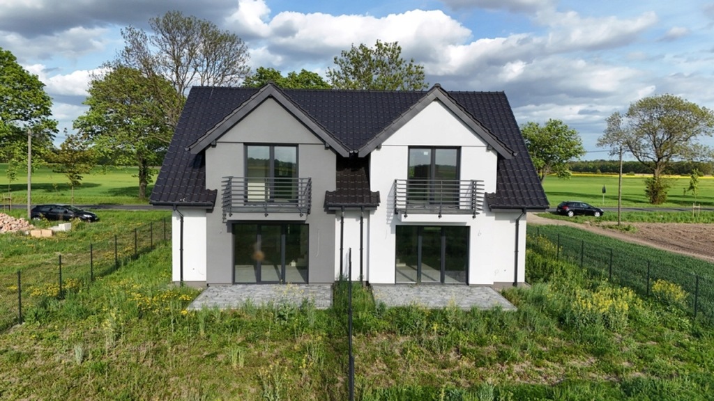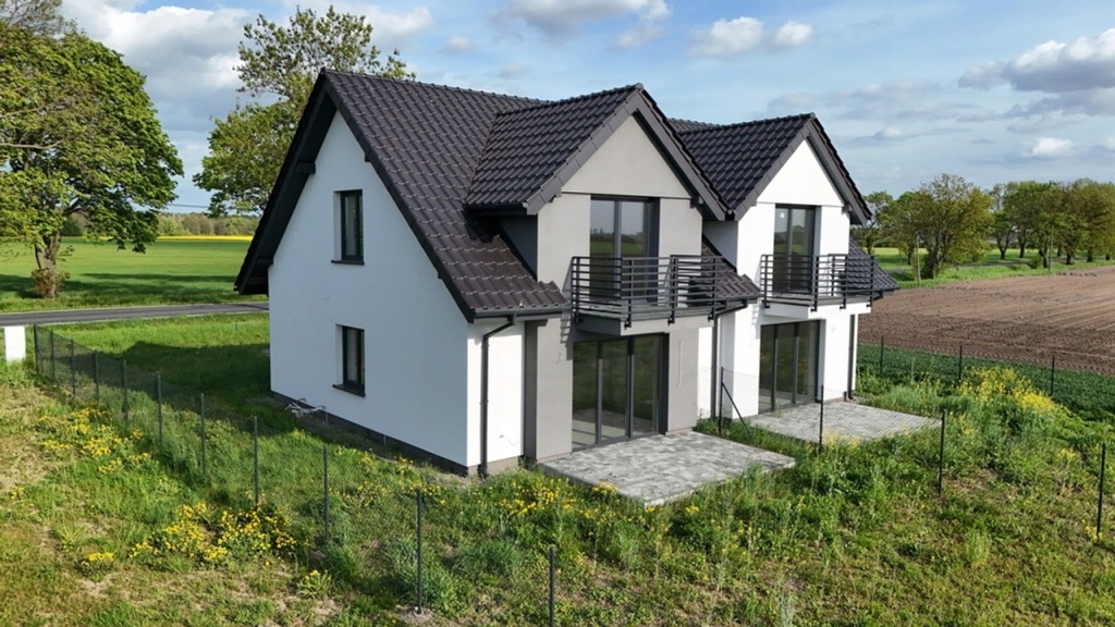 Pompa ciepła.Pięciokomorowe okna.Elektrycznie sterowane rolety okienne.Gotowa instalacja przygotowana pod fotowoltaikę.Gotowa instalacja przygotowana pod klimatyzację.Dachówka ceramiczna.Szambo bezodpływowe.Zbiornik na wodę deszczową 2 tys. litrów.Dwie oddzielne działki do każdego z lokali 370 m2.Inteligentne starowanie domu