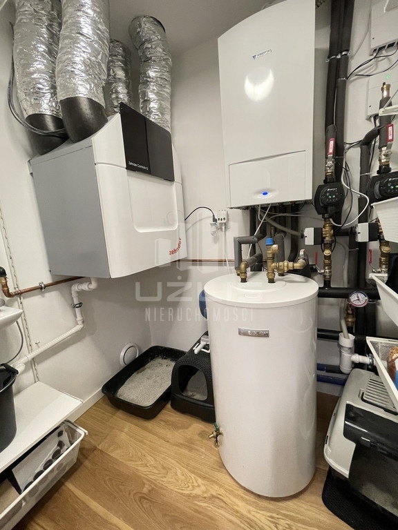 W domu zainstalowano nowoczesne ogrzewanie gazowe z piecem i buforem ciepłej wody, a na parterze zastosowano ogrzewanie podłogowe. Na piętrze znajdują się grzejniki. Dodatkowo, w domu zamontowano instalację rekuperacji, zapewniającą efektywną wentylację z odzyskiem ciepła.