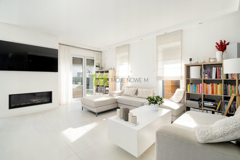 Dom wykończony w nowoczesnym, stylu, który wyróżnia się jasnym wnętrzem i dbałością o szczegóły.