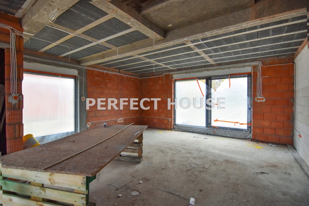 Okna 3-szybowe PCV, elektryczne rolety zewnętrzne pod kolor okien, system pompy ciepła oraz ogrzewanie podłogowe w całym domu.