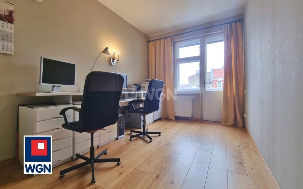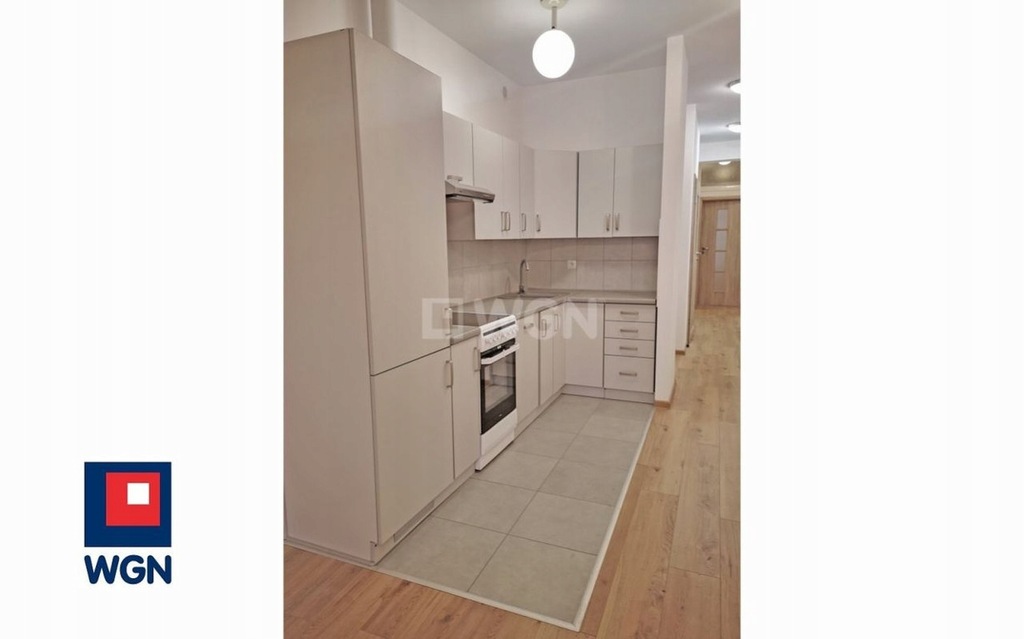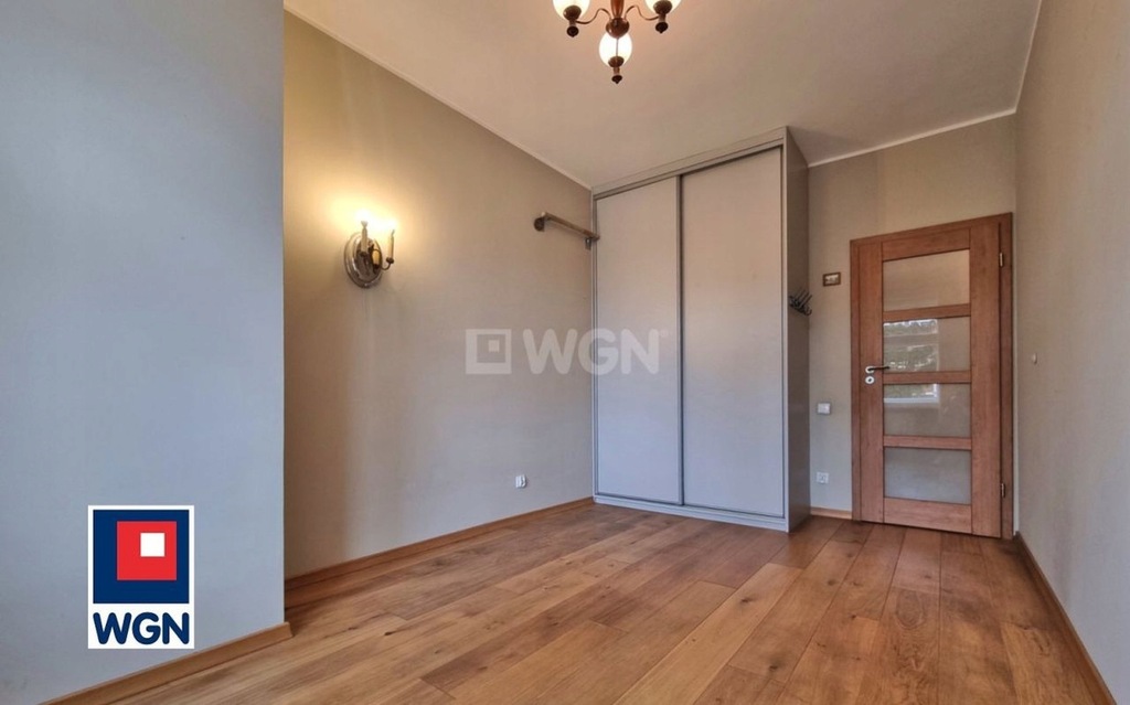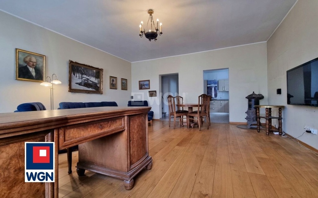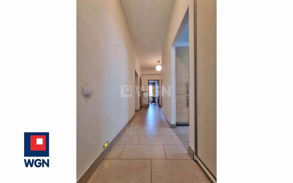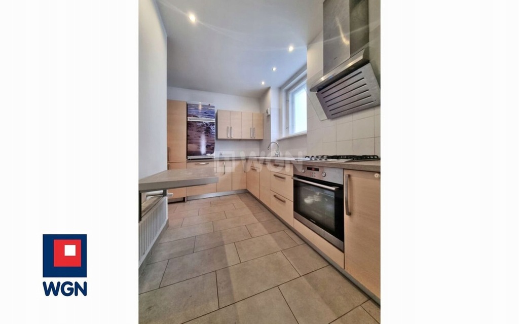 Mieszkanie na pierwszym piętrze zostało cztery lata temu wyremontowane. Lokal składa się z trzech ustawnych pokoi: 22,7 m2, 10,1 m2, 16,7 m2, w których podłogi są wyłożone panelami. Łazienka o powierzchni 3,4 m2 jest schludna, jasna, wyłożona płytkami. Znajduje się w niej wanna, pralka i WC. Kuchnia otwarta, umeblowana, wyposażona w lodówkę, płytę ceramiczną, piekarnik, pochłaniacz i zmywarkę.