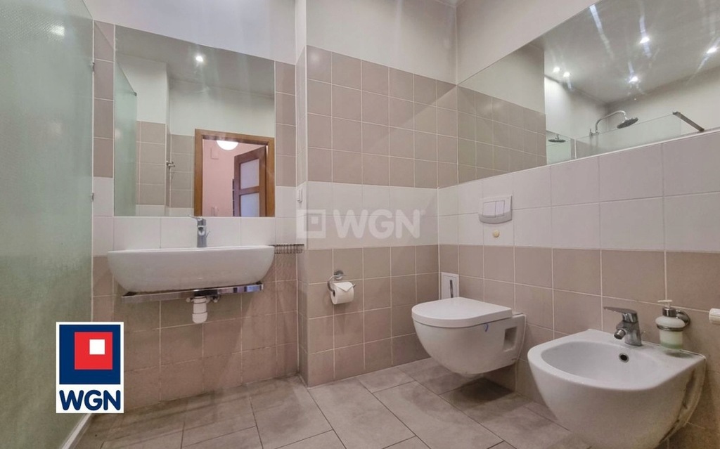 W nieruchomości znajduje się również łazienka 5,3 m2 z prysznicem, toaletą i bidetem oraz w pełni wyposażona kuchnia: kuchenka gazowa Samsung, pochłaniacz Amica, pralka Electrolux, lodówka Liebherr, zmywarka Ariston.