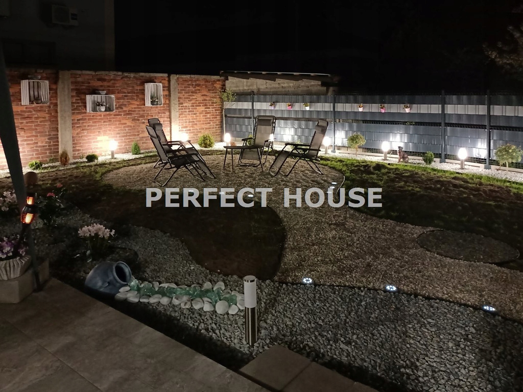 Ogród pięknie został zagospodarowany licznymi nasadzeniami oraz klimatycznym oświetleniem sterowanym przełącznikami znajdującymi się w salonie.