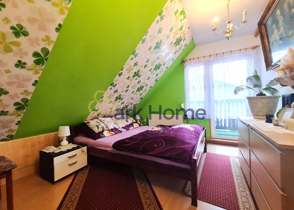 Na górze znajdują się 3 sypialnie, balkon oraz druga łazienka.