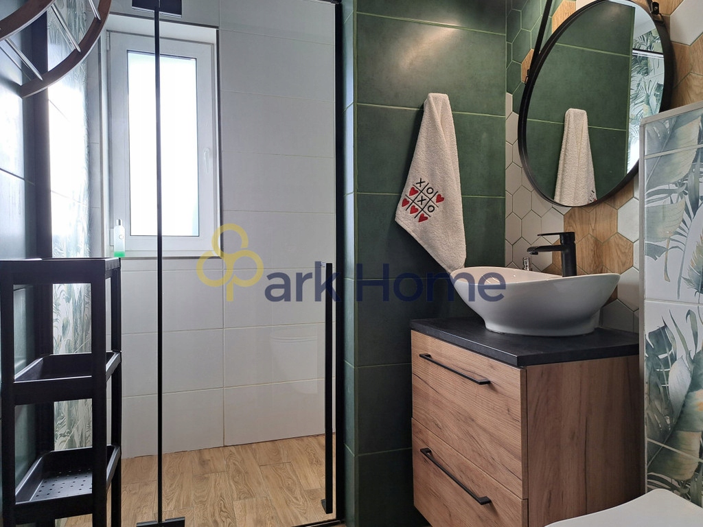 Na piętrze (47,30 m²) znajdują się trzy sypialnie, w tym jedna z wyjściem na balkon - idealna na poranną kawę. Zmodernizowana łazienka z oknem (5,9 m²) zapewnia komfort użytkowania i elegancki wystrój. Schody wykonane z eleganckiego drewna bukowego dodają wnętrzom ciepła i klasy.