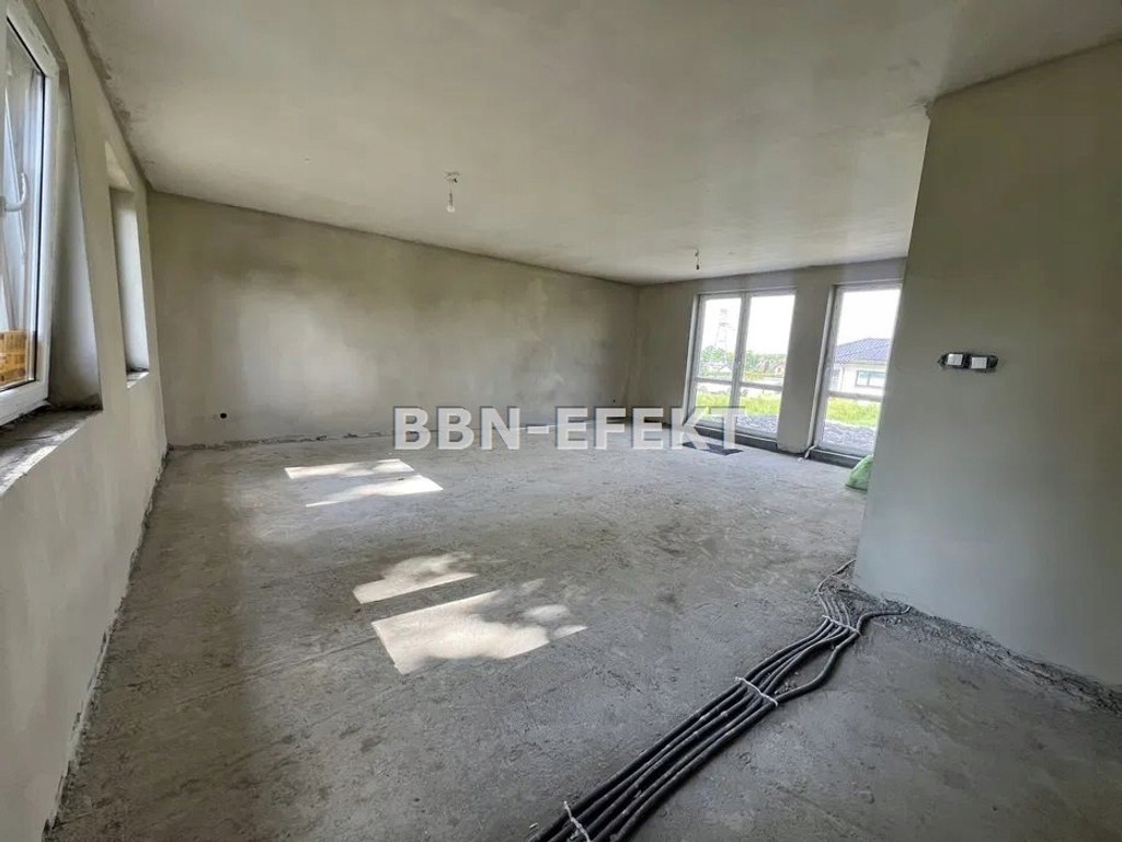 STAN TECHNICZNY: dom pierwotnie został wybudowany w 1960r., natomiast obecnie pozostała tylko część starego domu, a cała reszta jest nowa, wybudowana z pustaka w 2014r.. Dom ma powierzchnię 180 mkw., posiada dwa osobne wejścia, więc jest możliwość zamieszkiwania go przez dwie rodziny. Dom jest w stanie deweloperskim, nowe okna i drzwi zewnętrzne. Ogrzewanie docelowo gazowe.Zostały wykonane tynki maszynowe oraz instalacja elektryczna.Z zewnątrz budynek zabezpieczono hydroizolacją pionową i rozprowadzono rurę drenażową. Dom jest częściowo podpiwniczony. Po dwóch stronach są duże balkony, od strony wschodniej i zachodniej.