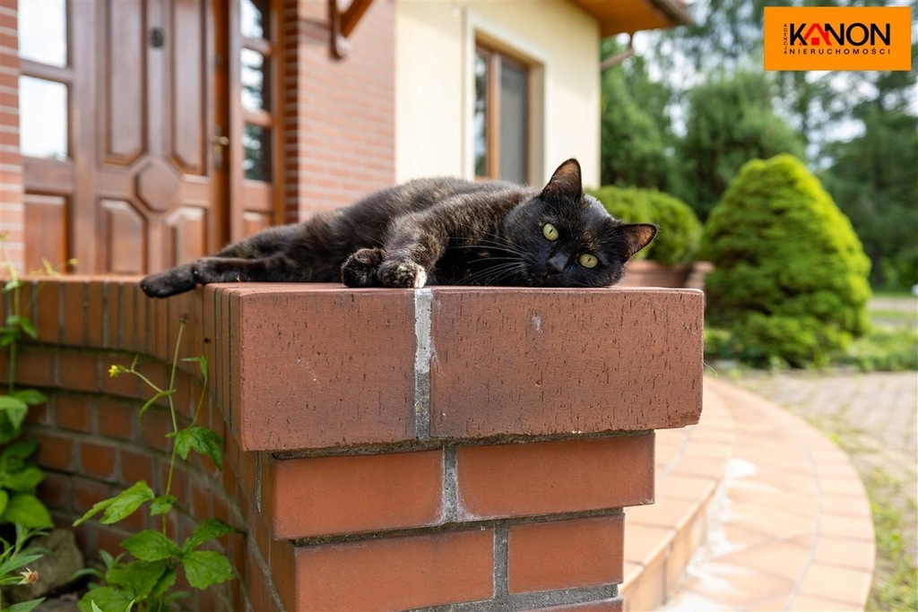 Ogród zaprojektowany zgodnie z zasadami Feng Shui, tworzy spójną całość z domem - jego oś wyznacza ścieżka prowadząca z przestronnego tarasu w głąb ogrodu. Liczne nasadzenia, kilkudziesięcioletnie drzewa oraz naturalne ukształtowanie terenu zapewniają prywatność i cień w upalne dni. Z ogrodu nie widać sąsiednich domów - to prawdziwa enklawa spokoju.