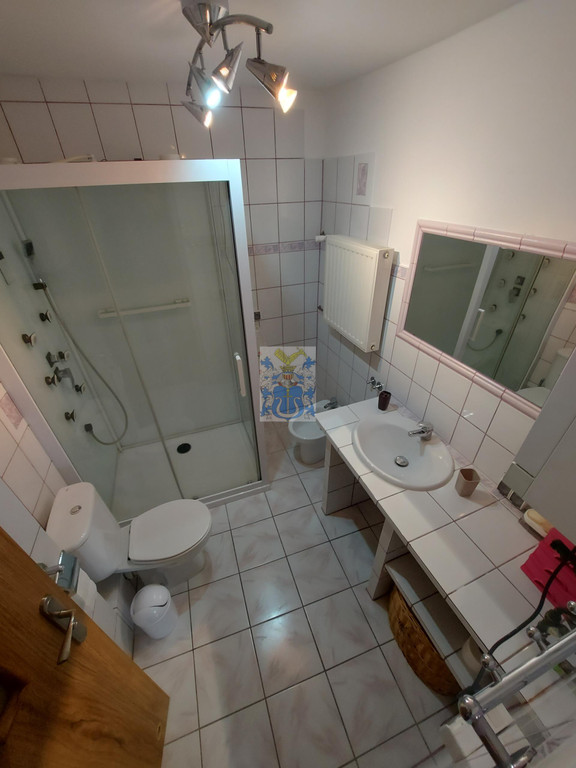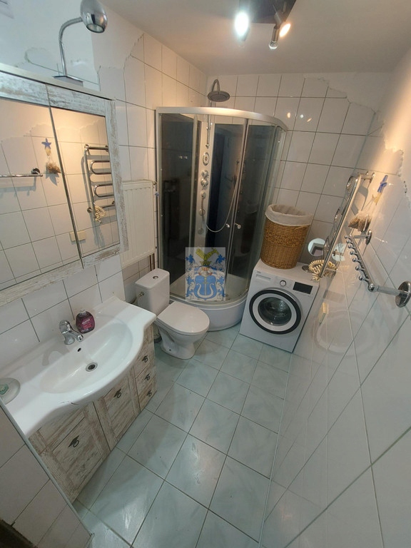 Kuchnia umeblowana i wyposażona w sprzęty AGD. W salonie stół z krzesłami, sofa, pojemna szafa w zabudowie. Łazienka na parterze z prysznicem, wc, umywalką i pralką.