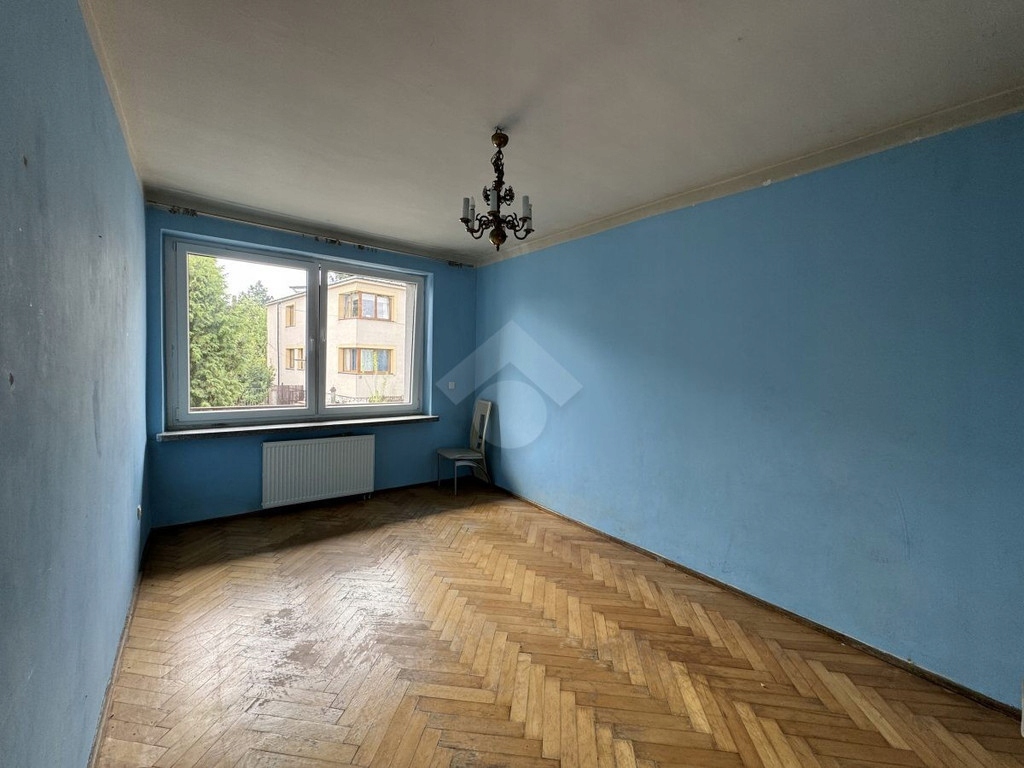 I piętro: część do odświeżenia. Na podłodze w pokojach parkiet, w łazience i toalecie glazura. W łazience prysznic, umywalka, toaleta, lustro. Osobna kuchnia z oknem, wyposażona w meble, lodówkę, kuchenkę gazową, piekarnik oraz zmywarkę. Pokoje są nieumeblowane. Ogrzewanie gazowe.