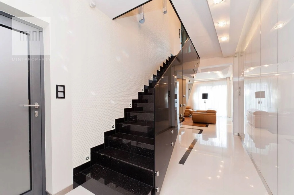MINT Property prezentuje na wynajem luksusowy dom położony na kameralnym, zamkniętym osiedlu domów jednorodzinnych. Dom bliźniak, po generalnym remoncie w 2012 roku z materiałów najwyższej jakości. Całe osiedle jest monitorowane, z 24h ochroną. Do wyłącznej dyspozycji mieszkańców pozostają, plac zabaw dla dzieci, boisko oraz altana na grilla mieszcząca 25 osób. Prezentowany dom o pow 200 m2 położony jest na 4 arowej działce i składa się z: Parter: