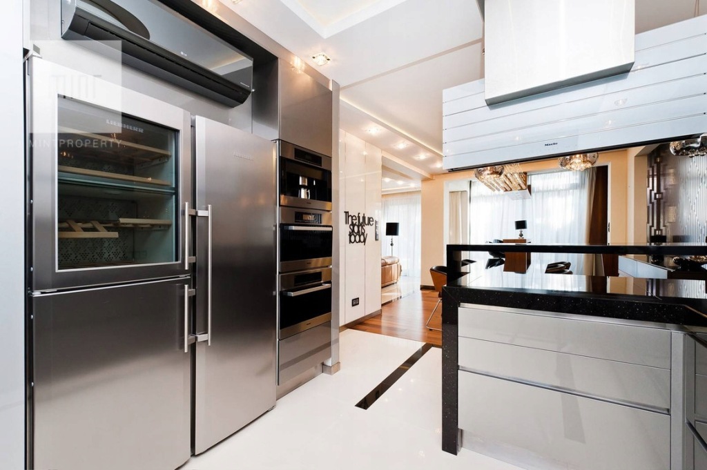 - aneks kuchenny wyposażony w min. sprzęt firmy Miele, duża lodówka z lodówką na wino, wbudowany ekspres do kawy,