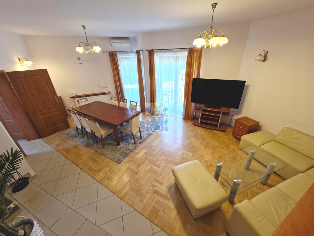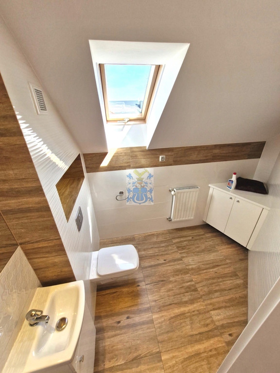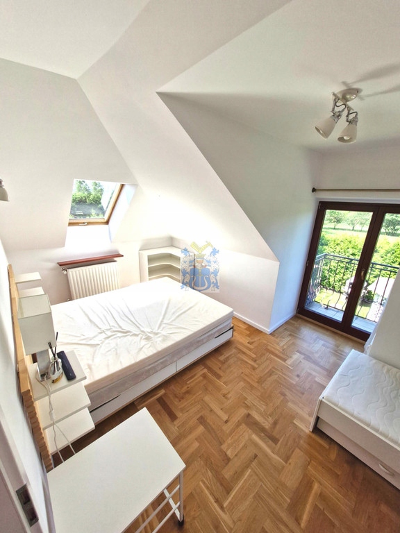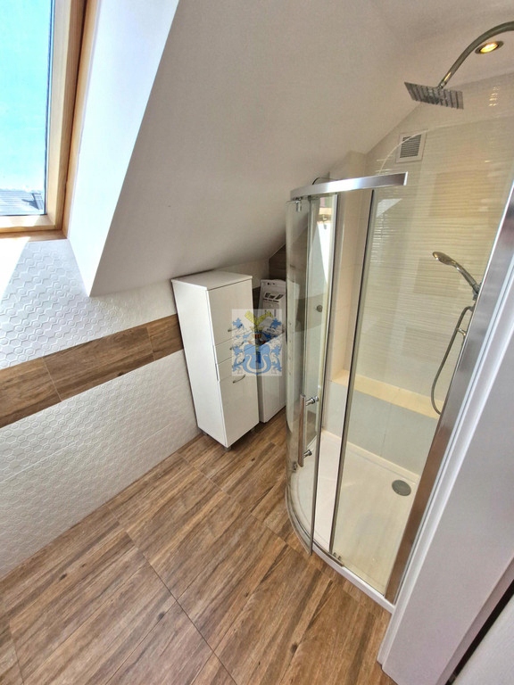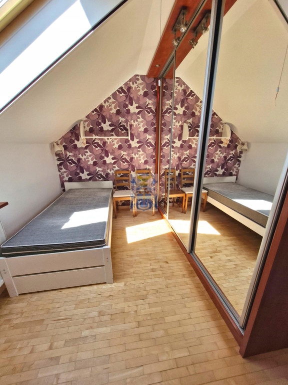Na poddaszu umeblowany salon z częściowo otwartą kuchnią. Sypialnie umeblowane. Łazienka z prysznicem.