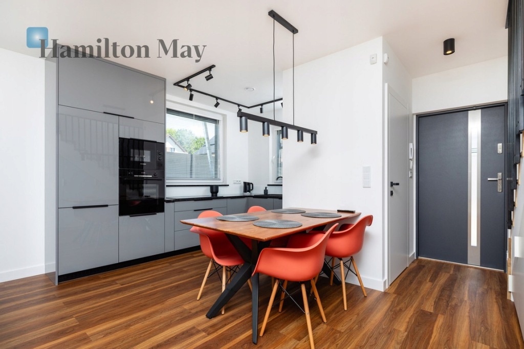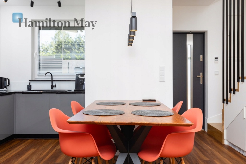 Hamilton May prezentuje ofertę wynajmu nowoczesnego, energooszczędnego domu w zabudowie bliźniaczej położonego w sąsiedztwie International School of Kraków w Lusinie.
