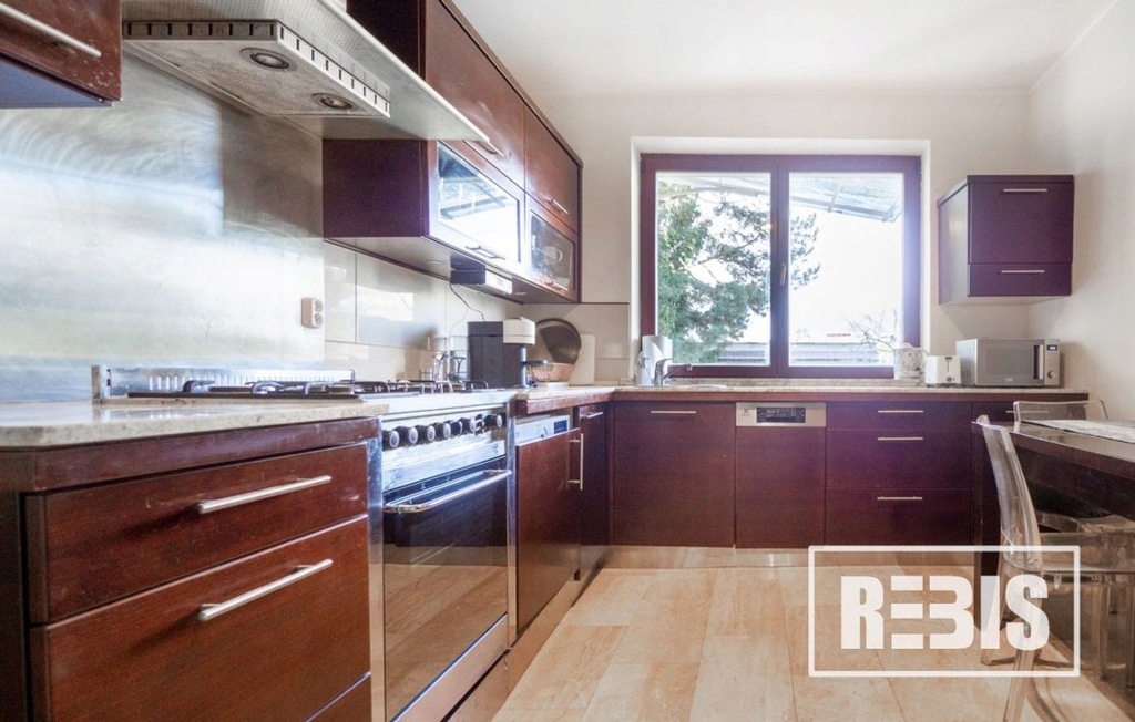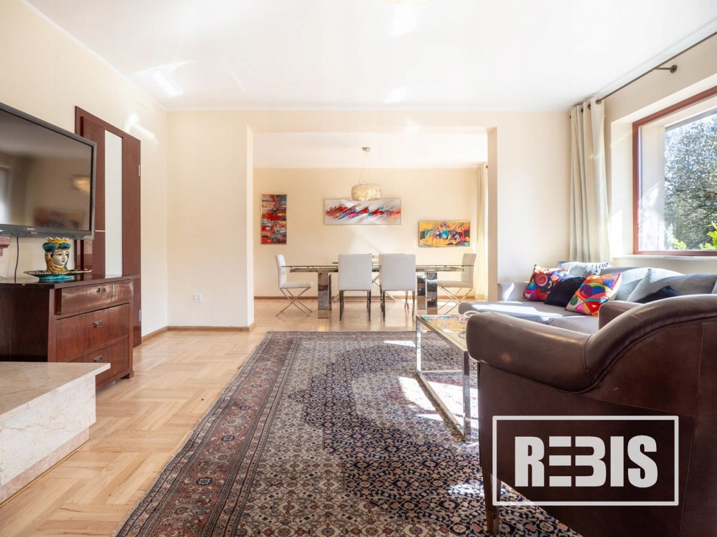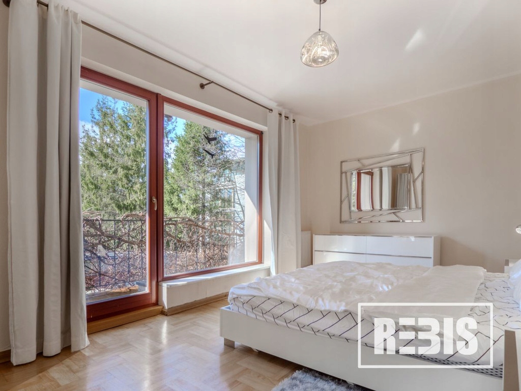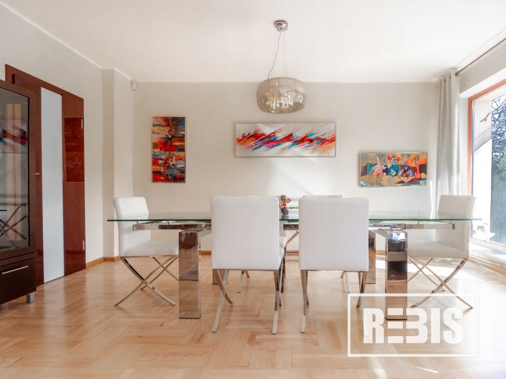 A luxurious apartment for rent with an area of 130 m2 with a terrace of 60 m2, a garden, swimming pool, bar room and laundry room at the tenant's disposal. The rental price includes 2 parking spaces. The apartment is located in Wola Justowska, overlooking the Wolski Forest.