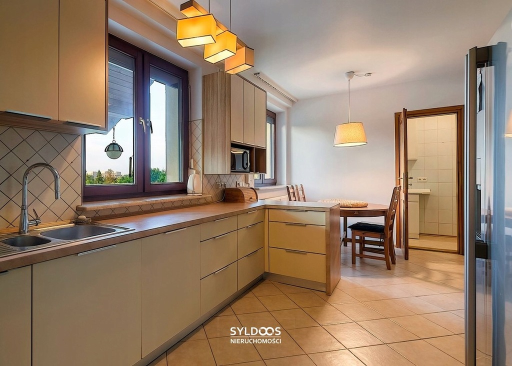 - w pełni wyposażona, duża kuchnia z praktyczną spiżarnią
