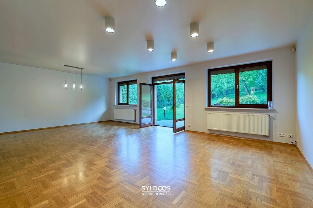Oferujemy do wynajęcia wygodny, komfortowy dom położony na przestronnej zielonej, 30-arowej działce położony na Woli Justowskiej otoczony pięknym dużym, zadrzewionym ogrodem.