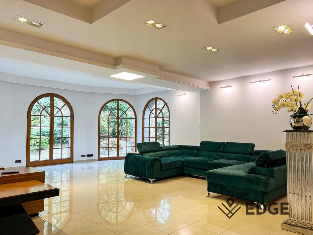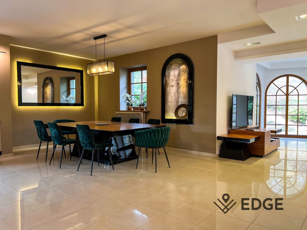 Przestronna willa o powierzchni 573 m² z drewnianym domkiem gościnnym na dużej, w pełni zagospodarowanej działce o powierzchni 2500 m². Wykończona w wysokim standardzie, zaprojektowana z myślą o komforcie i funkcjonalności.
