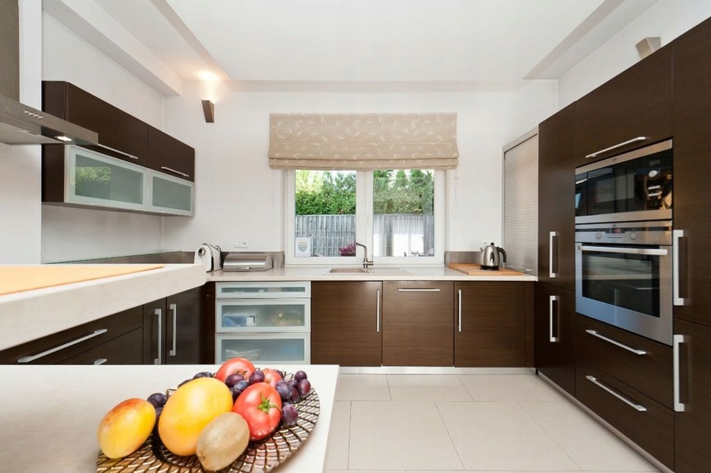 Kuchnia - ładne meble na miarę wraz ze sprzętem w zabudowie wysokiej jakości - duża lodówka z osobną zamrażarką, płyta ceramiczna Electrolux, piekarnik elektryczny, kuchenka mikrofalowa.
