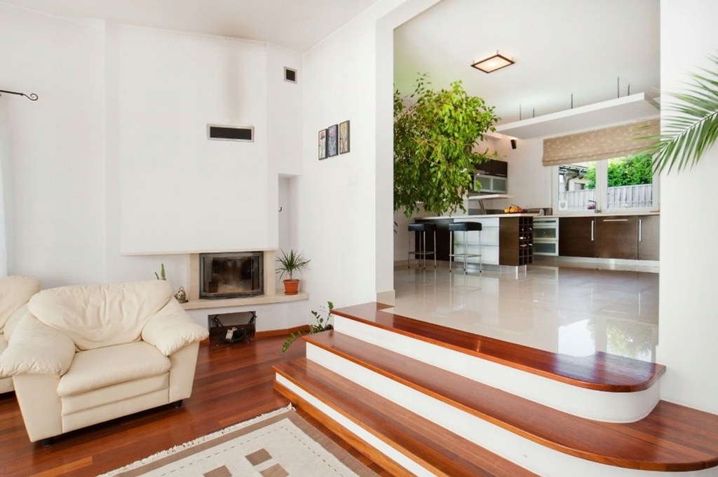 Dom jest bardzo ładnie wykończony, w wysokim standardzie, czysty i zadbany, częściowo umeblowany (część mebli widocznych na zdjęciach została usunięta).