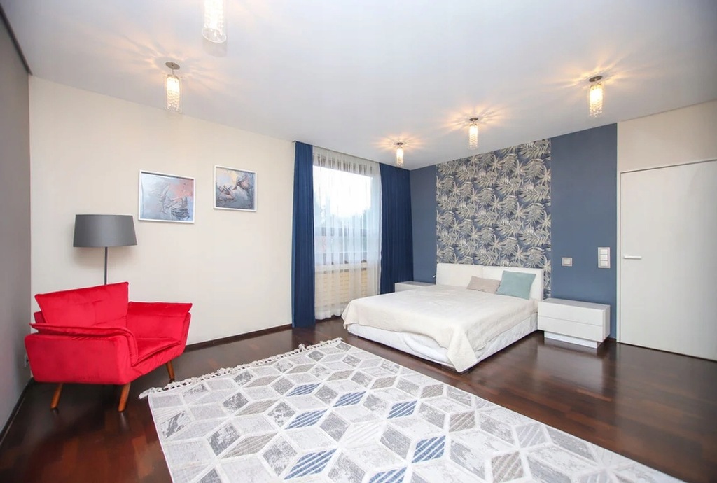 This is a beautifully appointed house with large living spaces and a high standard of finishes. Outside, there is a pond and a stream, which add to the charm of the surroundings, creating a unique atmosphere, and a large garden with numerous corners for relaxation and recreation. There is also a spacious terrace at the tenant's disposal, ideal for socializing and relaxing.