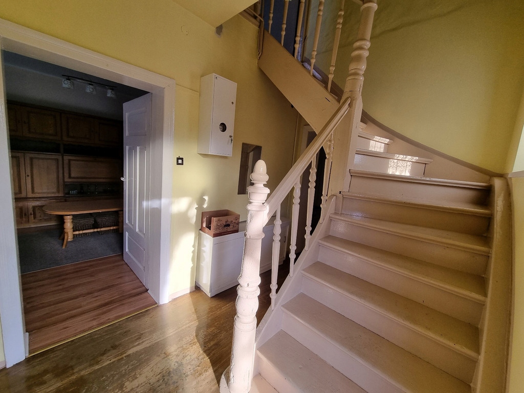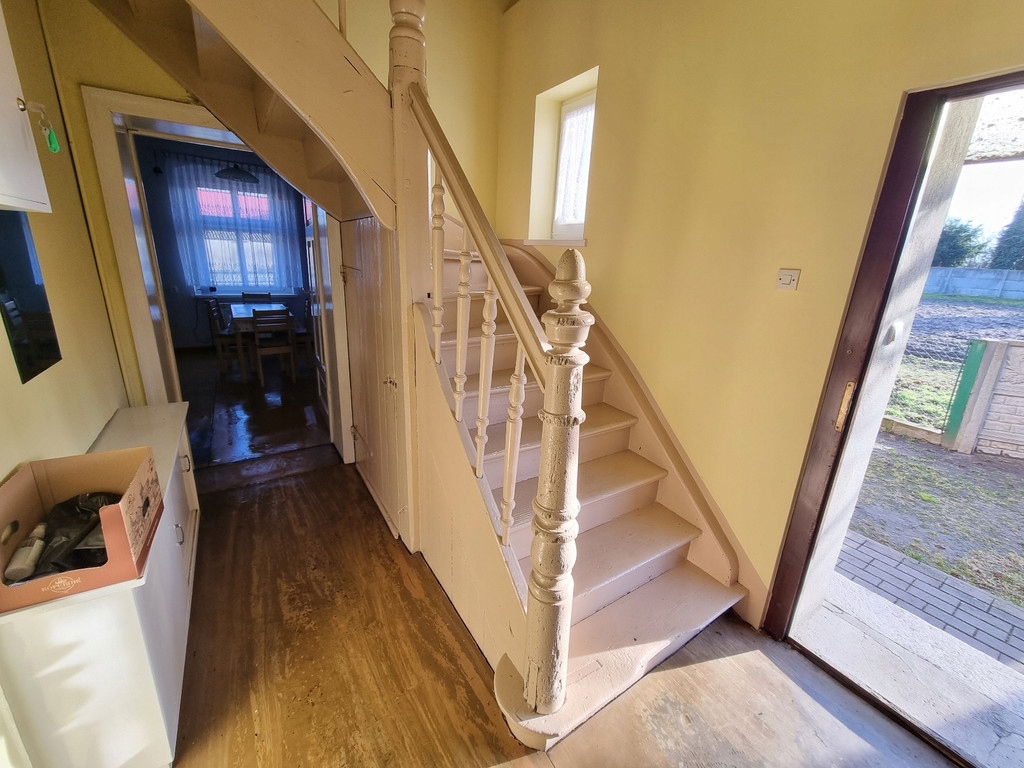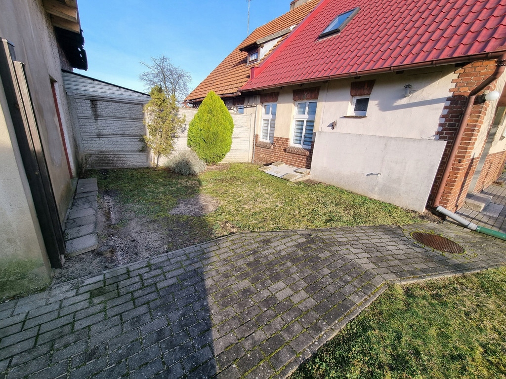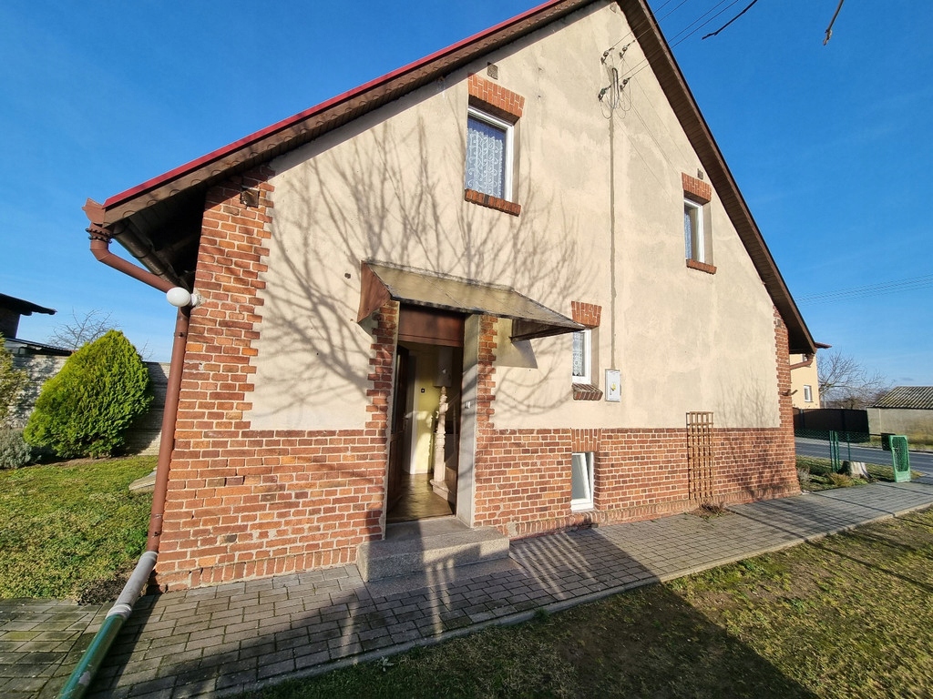 OPIS: dom dwukondygnacyjny wybudowany w systemie tradycyjnym w XIX wieku. Materiał budowlany - cegła, otynkowany, nieocieplony. Fundamenty w postaci ławy betonowej, dach dwuspadowy pokryty blachodachówką. Teren nieruchomości ogrodzony płotem z siatki oraz betonowym. Budynek gospodarczy murowany z cegły, garaż drewniany. Chodniki na wyłożone kostką brukową.