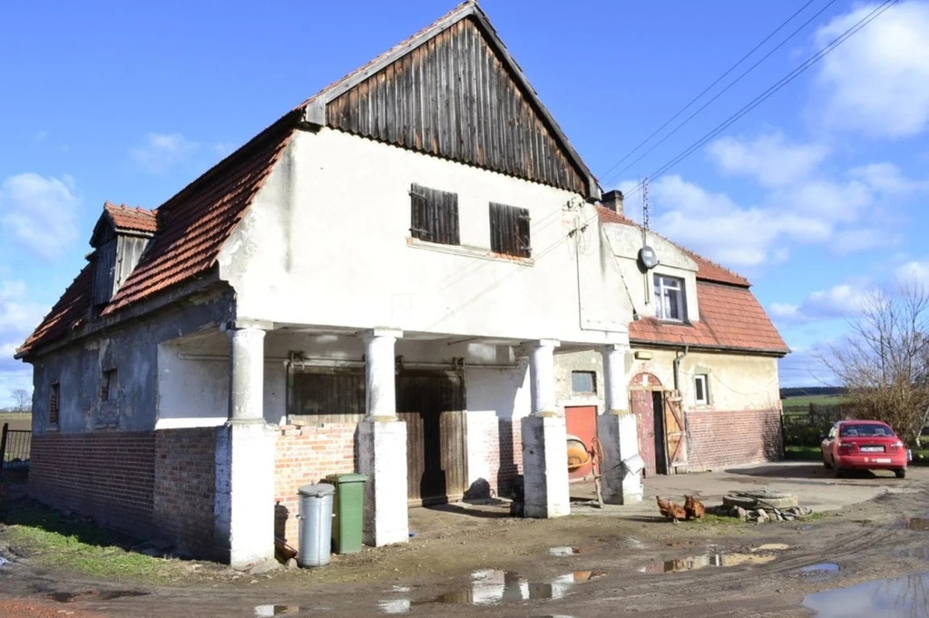 wiaty. W cenie działka zabudowana budynkami i grunty rolne w IV klasie łącznie o powierzchni około 5ha. Nieruchomość z dużym potencjałem w bliskim sąsiedztwie miasta Wińsko. Budynki solidne wykonane z cegły. Część mieszkalna po remoncie kompleksowym. Nowa kuchnia z wyposażeniem. Dodatkowa warsztatowa część budynku około 200m2 z możliwością adaptacji na cele mieszkalne do własnej aranżacji. Budynek posiada centralne ogrzewanie z pieca węglowego. Media woda, prąd siła, szambo o pojemności 11m3. Bardzo szerokie możliwości działalności rolniczej i gospodarczej. SUPER OFERTA!!!!!