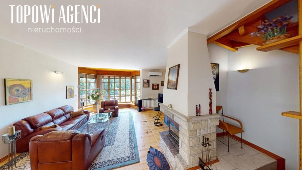 Na parterze salon z wyjściem na taras, kuchnia i toaleta. Na pierwszym piętrze 3 pokoje i łazienka, na poddaszu dodatkowe pomieszczenie, sauna, łazienka. W piwnicy siłownia, pralnia, suszarnia.