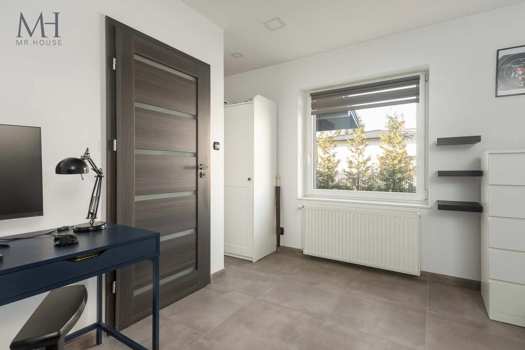 Dodatkowo 2 garaże jednostanowiskowe, pomieszczenie gospodarcze oraz pokój/biuro nad garażem.