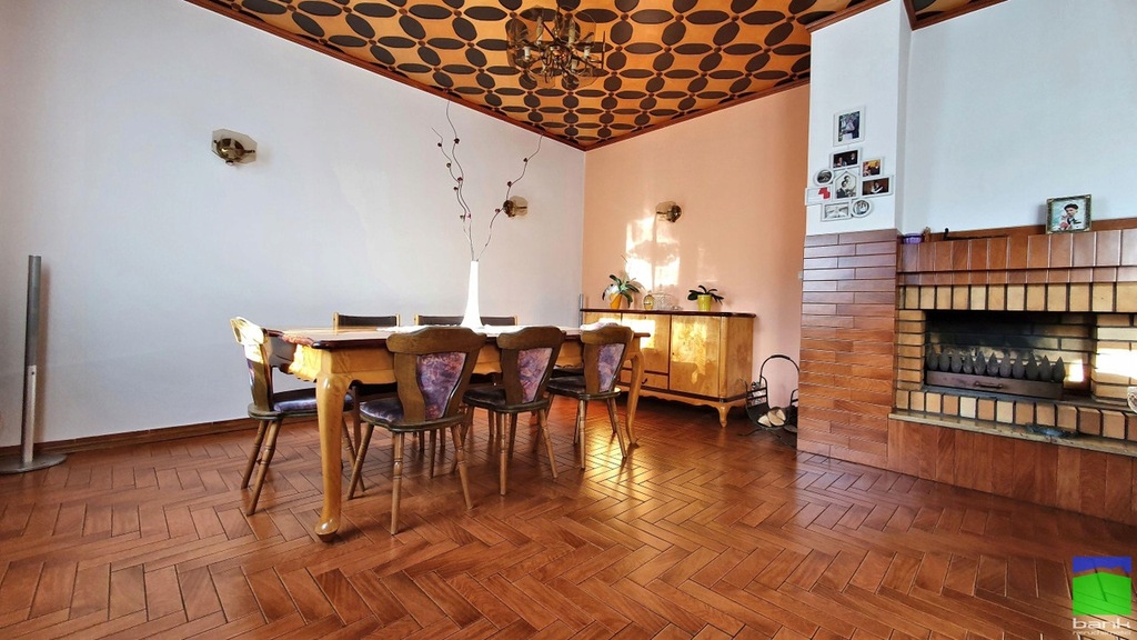 - parter: salon z kominkiem, kuchnia, łazienka, pokój, kotłownia