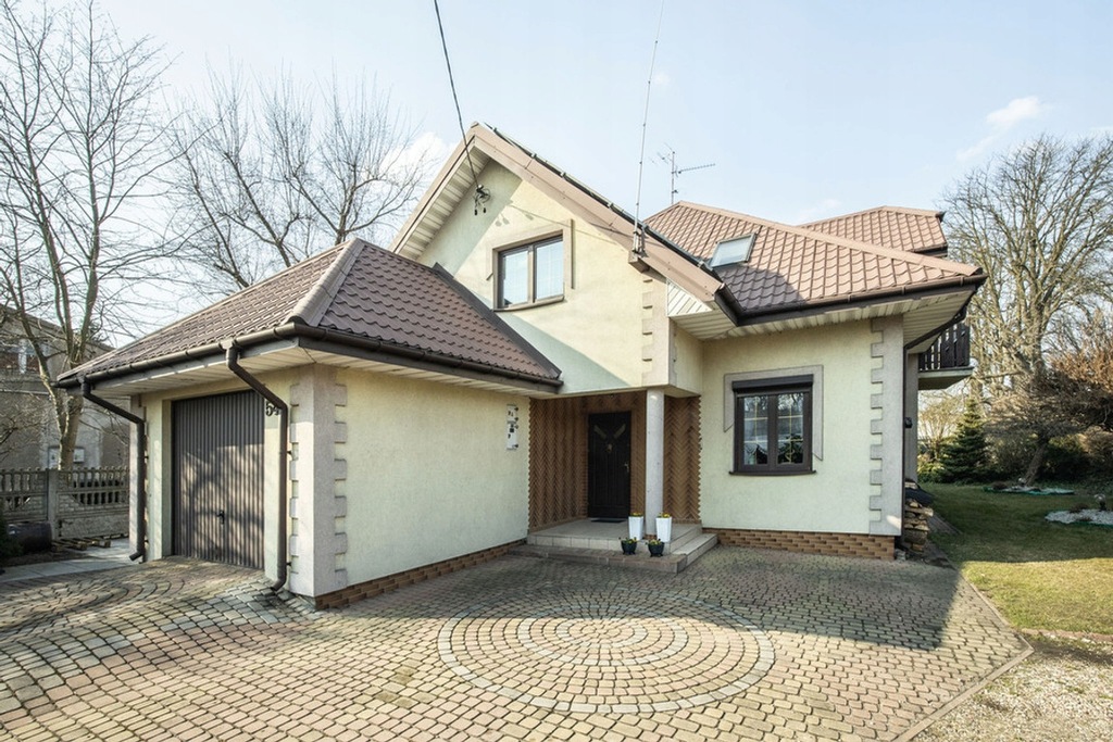 Przedmiotem sprzedaży jest wolnostojący, piętrowy dom z garażem w bryle budynku, o łącznej powierzchni użytkowej wynoszącej ok. 205 m². Wybudowany został w konstrukcji murowanej, z wykorzystaniem ceramiki. Na dachu zamontowana jest instalacja fotowoltaiczna, co istotne funkcjonuje zgodnie z korzystnymi "starymi zasadami". Elewacja budynku to spójne połączenie różnych materiałów i struktur tworzące efektowną i ponadczasową kompozycję. Nieruchomość otoczona jest ogrodzeniem murowanym z drewnianymi sztachetami, furtką oraz bramą wjazdową. Posiada alarm i moniroring.