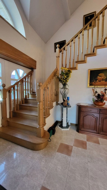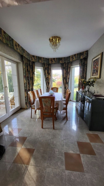 Dom składa się z trzech kondygnacji i około 300 m² powierzchni użytkowej. Przestrzeń ta została doskonale zaplanowana - znajdziesz tu aż 6 pokoi, dużą kuchnię z wyspą idealną do wspólnych posiłków, jadalnię oraz przestronny salon. Dwie łazienki zapewniają komfort codziennego użytkowania, a dodatkowe pomieszczenia takie jak piwnica czy sauna to kolejne atuty tej nieruchomości. Dla miłośników świeżego powietrza przygotowano dwa balkony, z których można podziwiać otaczającą przyrodę.