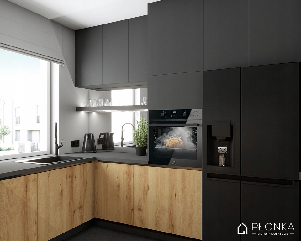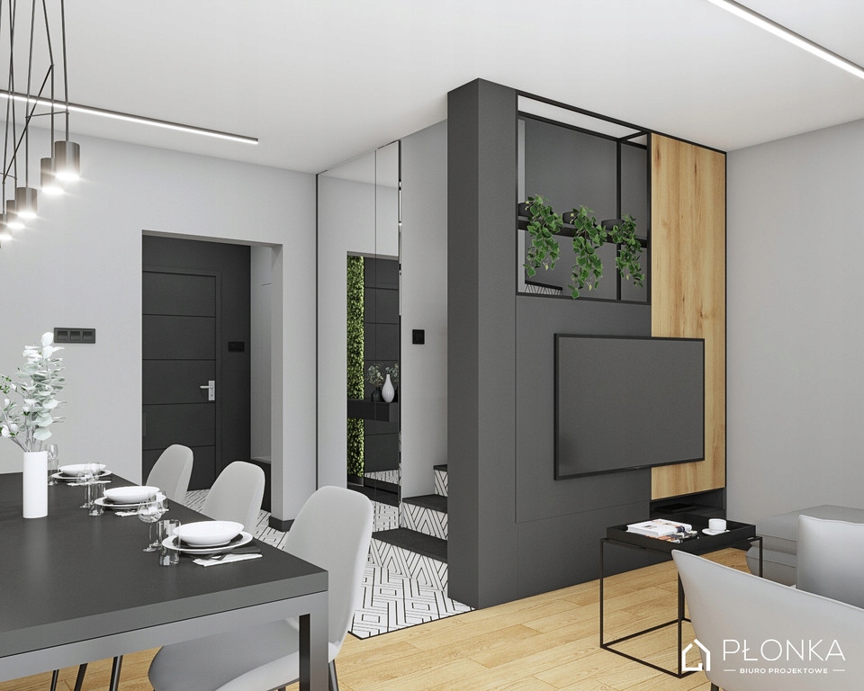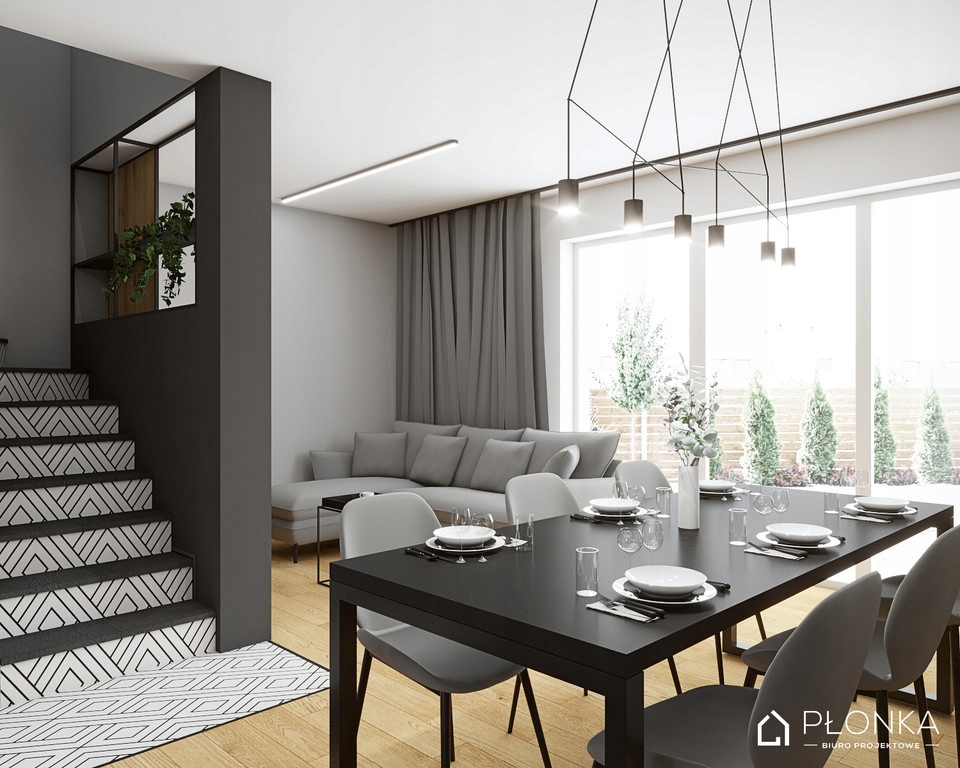 ✔ PARTER, na którym znajdują się salon z jadalnią oraz osobna kuchnia, klatka schodowa, dzięki której zyskujemy dodatkową przestrzeń na tzw. schowek, WC i przedsionek.