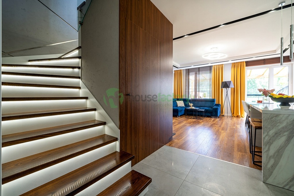 Nieruchomość jest wyposażona w nowoczesny system antywłamaniowy. Garaż w bryle budynku z bezpośrednim wejściem z domu to dodatkowa wygoda, którą doceni każdy właściciel.
