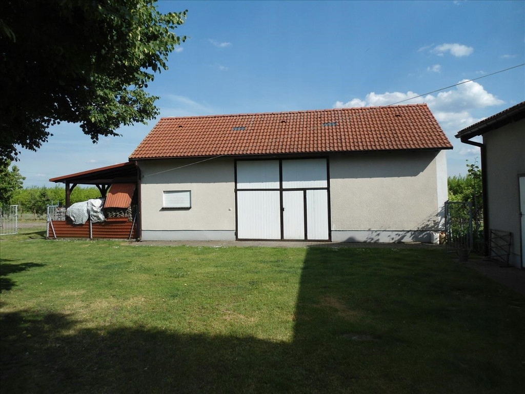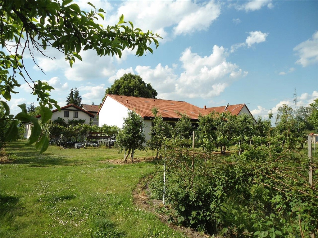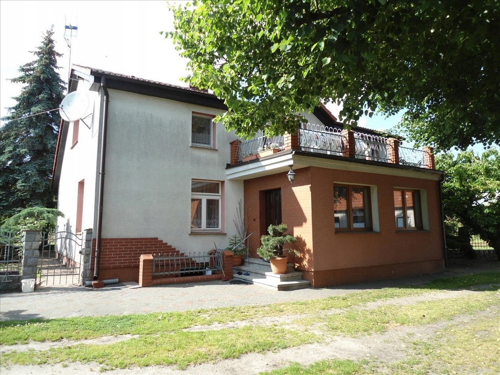 Podpiwniczony dom jednorodzinny z poddaszem użytkowym. Parter: trzy pokoje, łazienka, przedsionek oraz pomieszczenie gospodarcze. Poddasze: pokój z aneksem kuchennym, sypialnia, salon i wyjście na taras. Na terenie działki w jednym z wolno stojących budynków znajdują się trzy garaże (dwa z nich posiadają kanał naprawczy). W kolejnym wolno stojącym pomieszczeniu mieści się dwukomorowa chłodnia do owoców (łączna pojemność 70 t.). Na terenie nieruchomości znajduje się również wolno stojące pomieszczenie gospodarcze. Przed domem mieści się ogród. Zaraz obok domu jest sad na powierzchni około 4 Ha. Sad posiada około 11 tys. drzewek. JEST MOŻLIWOŚĆ USUNIĘCIA DRZEW. Cały sad ogrodzony, osobne ogrodzenie posesji , brama wjazdowa elektronicznie sterowana. Przed domem studnia (własne ujęcie wody). W miejscowości znajduje się kościół, kilka sklepów i przystanek autobusowy PKS.