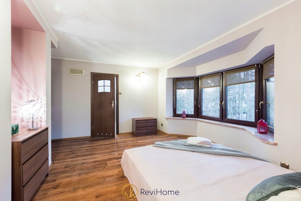Główna sypialnia to prawie 30 metrów powierzchni na które składają się: sypialnia, garderoba oraz widna łazienka z wanną.