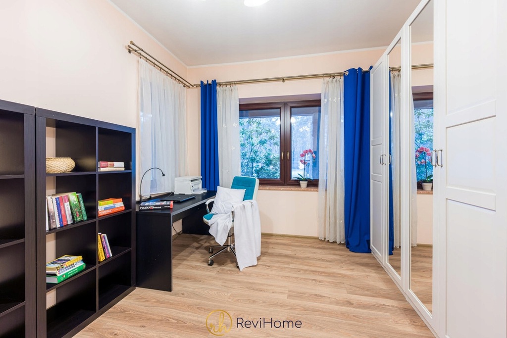Na parterze ulokowany jest również gabinet, łazienka oraz osobny prysznic.