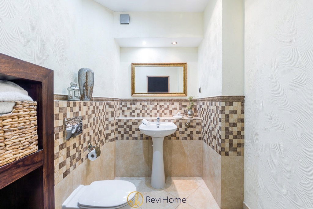 Na tym poziomie domu znajdują się 3 sypialnie, duży pokój wypoczynkowy oraz dwie łazienki.