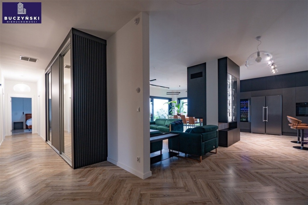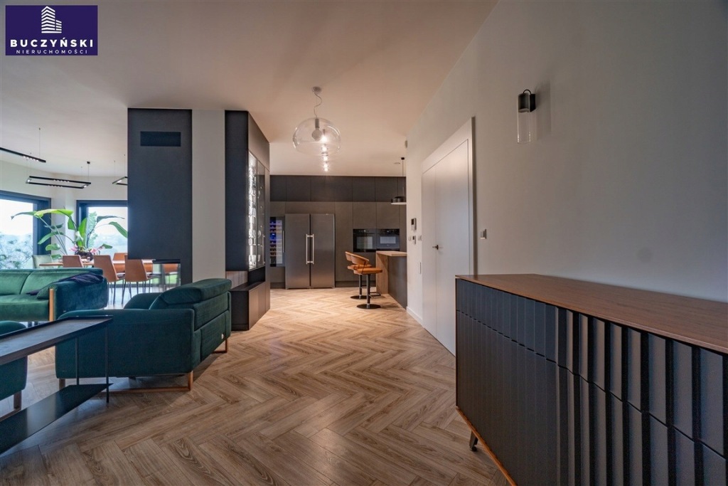 Luksusowe wyposażenie: Wnętrza zaprojektowane z dbałością o każdy detal. Wysokiej klasy kuchnia z kamiennymi blatami i frontami ze spieku kamiennego, lodówka Liebherr z kostkarką i oddzielną lodówką na wina, oraz płyta indukcyjna z wbudowanym okapem. Salon wyposażony w sprzęt audio Bose, 85-calowy telewizor oraz eleganckie meble KLER, które zadbają o Twój relaks po długim dniu.