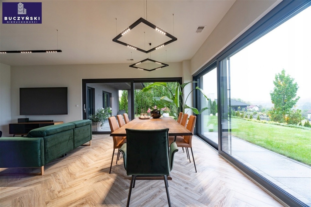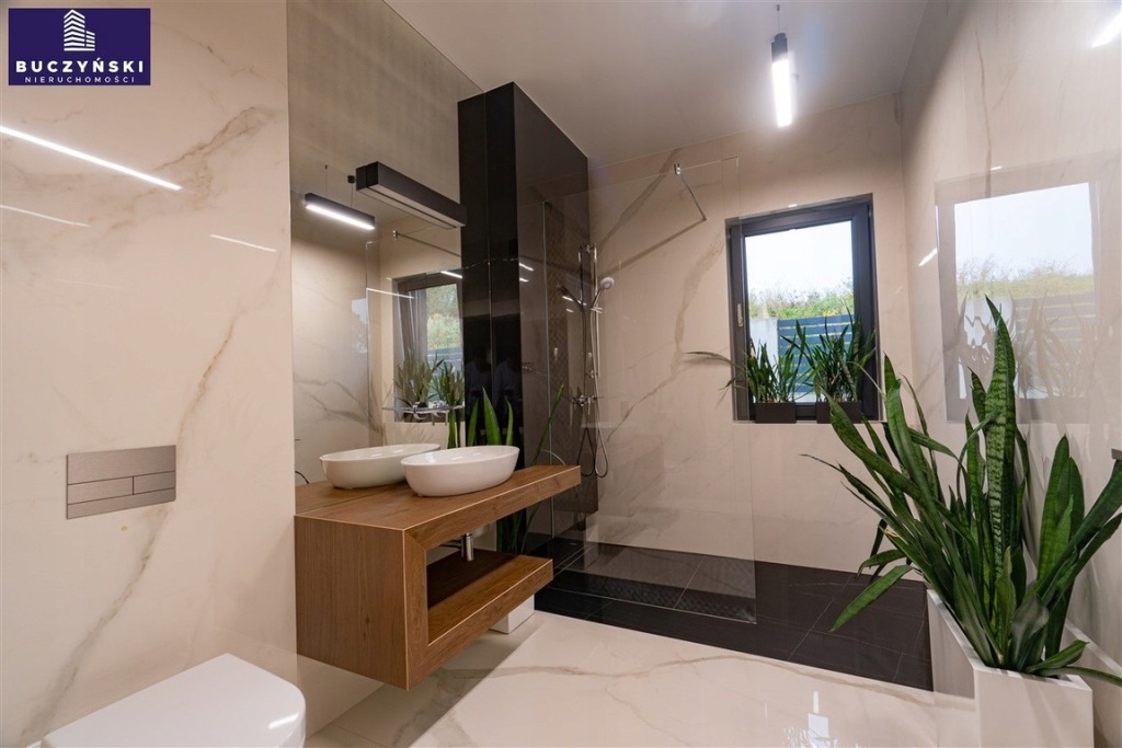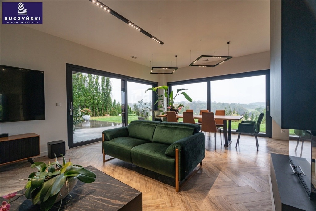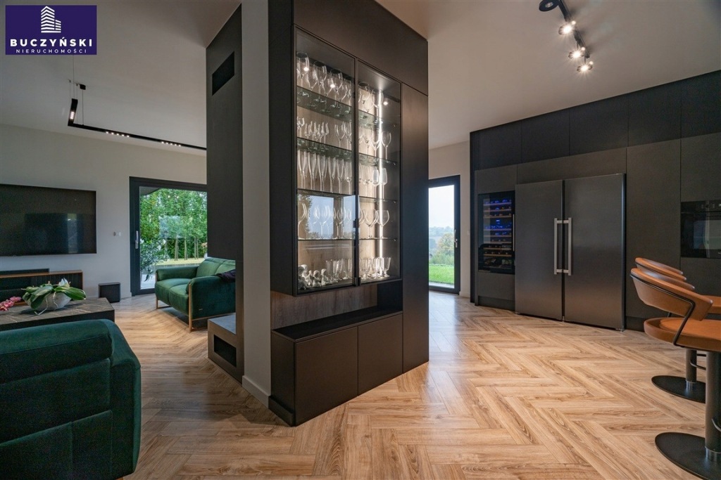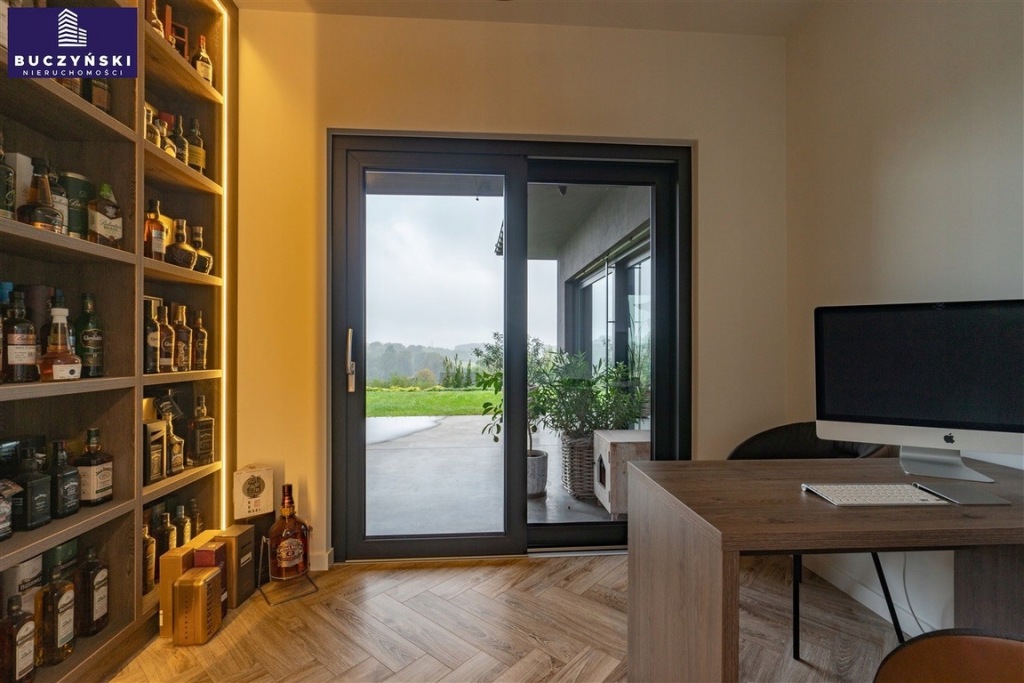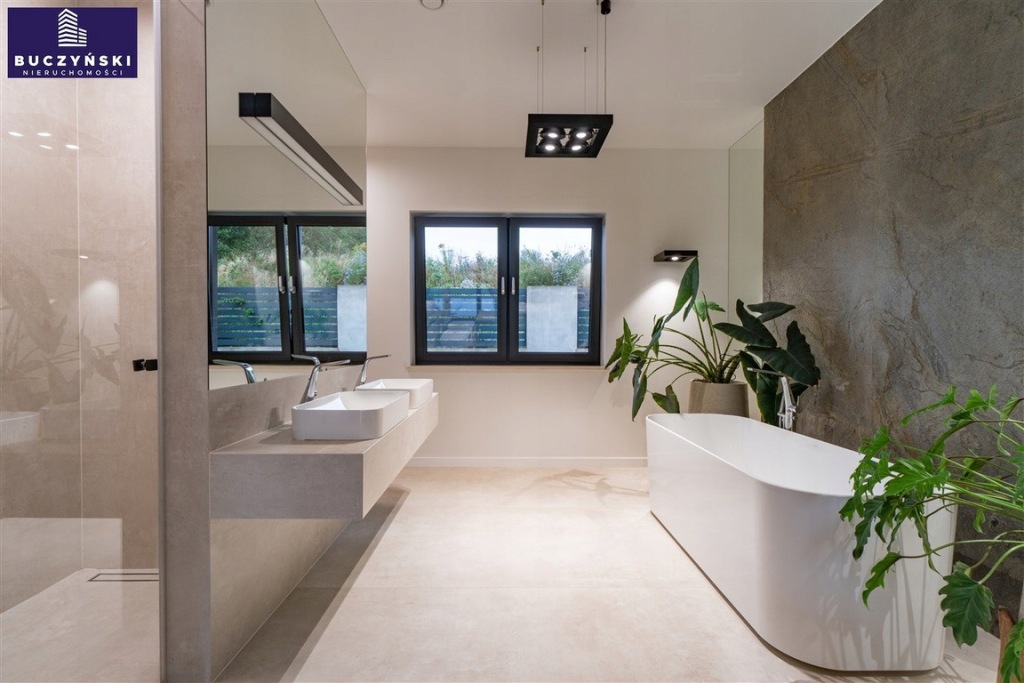 Bezpieczeństwo i wygoda: Dom został wyposażony w najnowocześniejsze technologie - system alarmowy, 8 kamer, videodomofon, elektryczne żaluzje w każdym oknie, centralny odkurzacz sterowany radiowo, klimatyzację, rekuperację oraz ogrzewanie podłogowe w całym budynku.