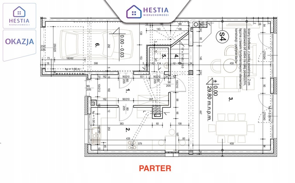 - duży garaż w bryle budynku 19,5 m² z bramą automatyczną