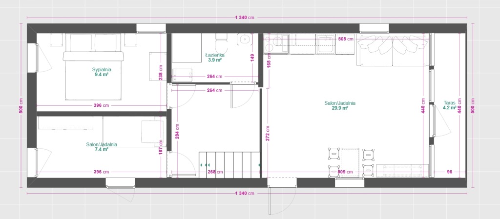 Istnieje możliwość konfiguracji innego ustawienia pomieszczeń.