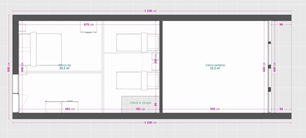 -wysokość antresoli w najwyższym punkcie 170 cm
