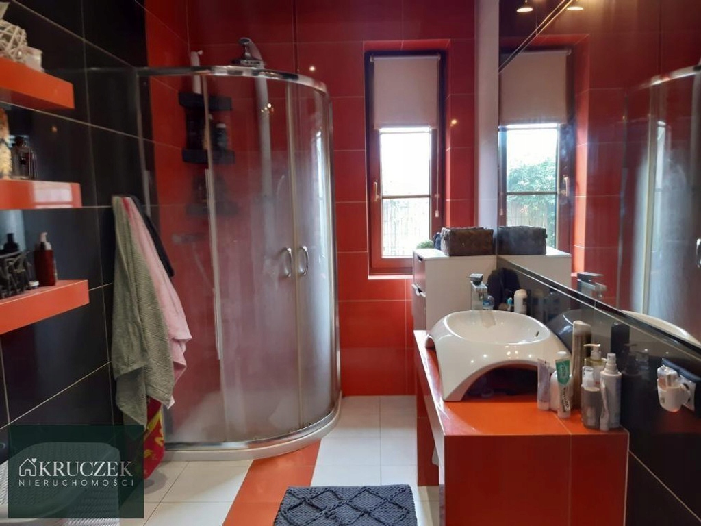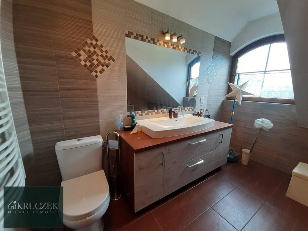 Nieruchomość została wykończona przy użyciu wysokiej klasy materiałów. Ogrzewanie podłogowe w łazienkach i przedpokoju, ogrzewanie gazowe, kominek obłożony kamieniem naturalnym, na podłogach parteru deska berlinecka oraz gres, piękne duże oka. Dom jest umeblowany. Podjazd z kostki, 8 miejsc postojowych, pięknie zagospodarowana i ogrodzona posesja.